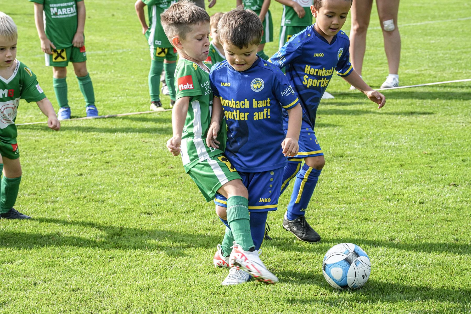 Um 10:00 Uhr ging es dann los – erstes Spiel, erster Anstoß, erste Nervosität. Gleich zu Beginn wartete der Gegner aus Hohenems auf unsere Nachwuchskicker. Und auch wenn sich unsere Jungs und Mädels am Ende geschlagen geben mussten, gab es strahlende Gesichter: Die ersten eigenen Tore und Torchancen wurden gefeiert wie ein Finaltreffer!